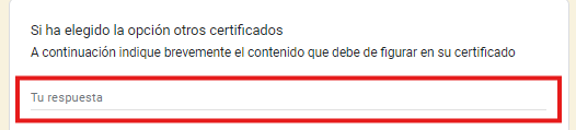 4. Para continuar, en la siguiente opción, explica brevemente lo que debe constar en el certificado. Redacta brevemente lo que necesitas que incluya el certificado. Esto ayudará a procesar tu solicitud de manera más eficiente.